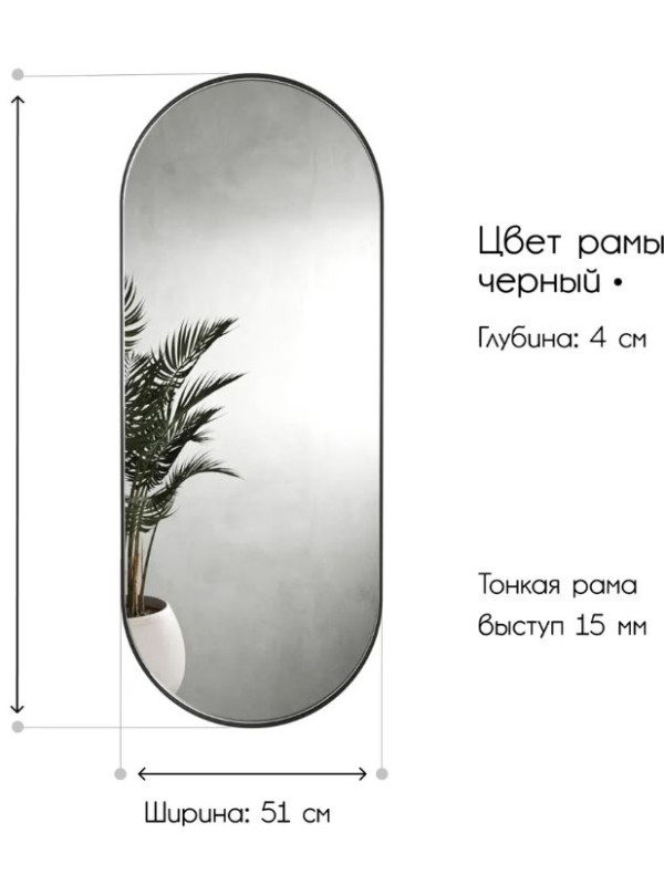 Дизайнерское овальное настенное зеркало Glass Memory Harmony в металлической раме черного цвета в Стерлитамаке